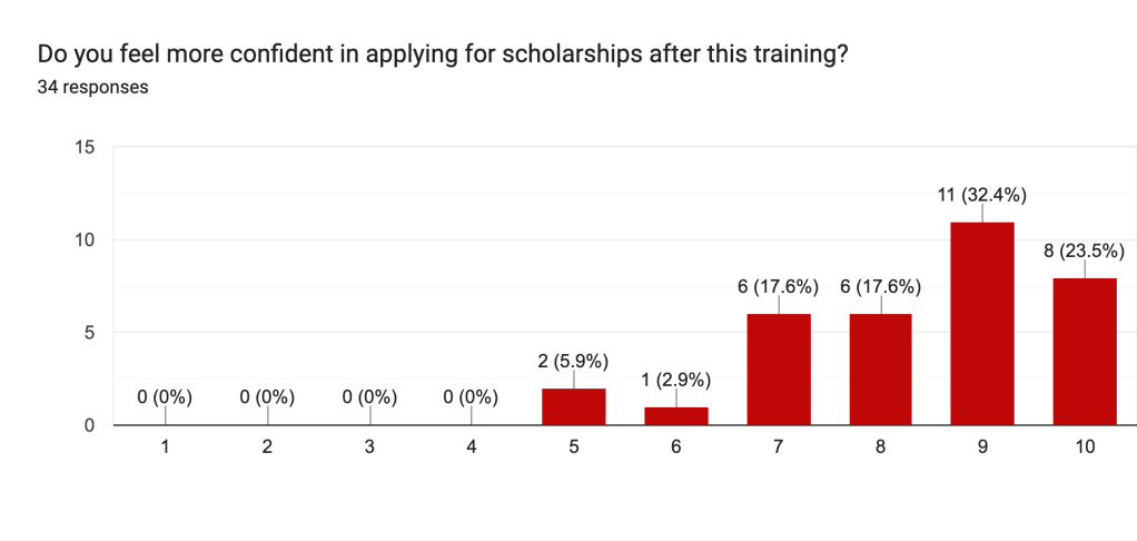 - Beginner-Friendly Approach – Since nearly 70% of applicants were first-time scholarship seekers, the training provided essential step-by-step guidance on essay writing, recommendation letter requests, and interview techniques, making it highly relevant to the participants’ needs.