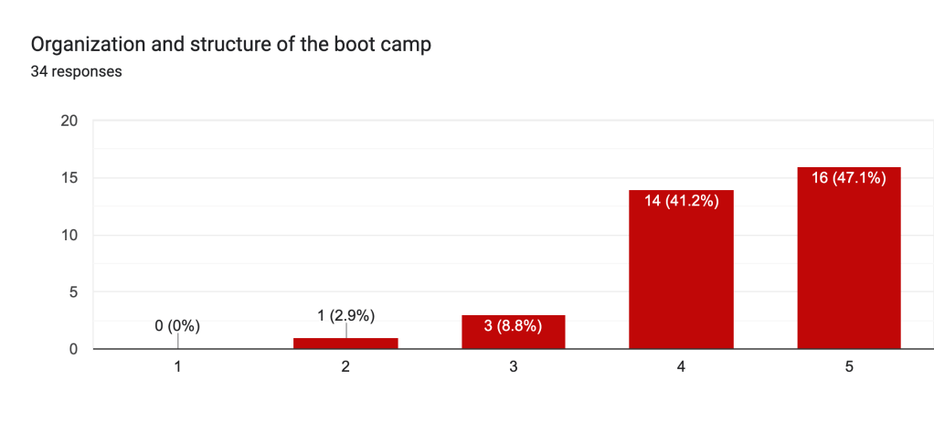- This suggests that most participants feel significantly more prepared after the bootcamp.